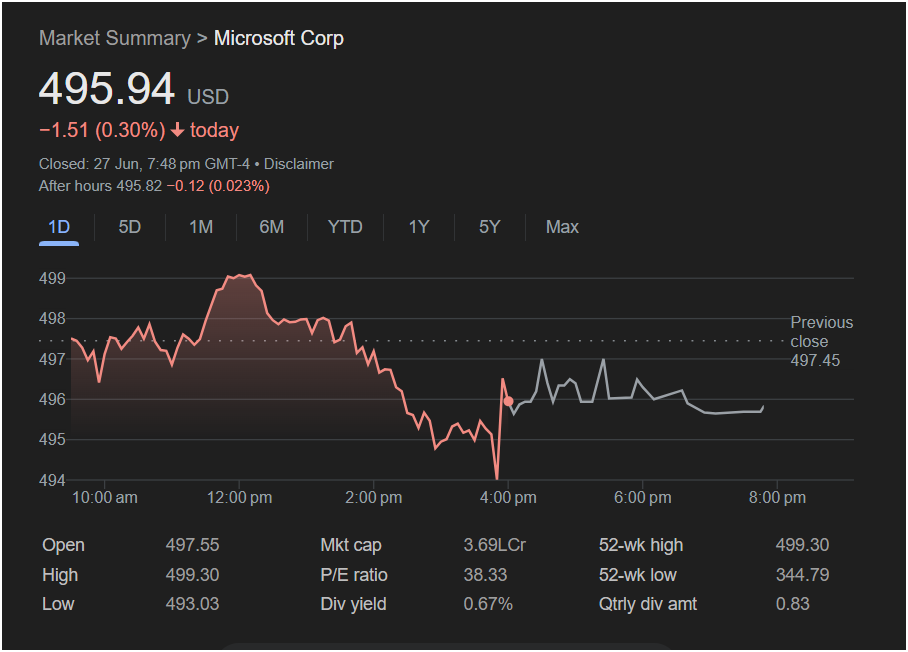 While the stock found some footing in the final hour of trading, it failed to recover its earlier losses. A slight dip in after-hours trading to $495.82 further solidified the bearish sentiment heading into the weekend.