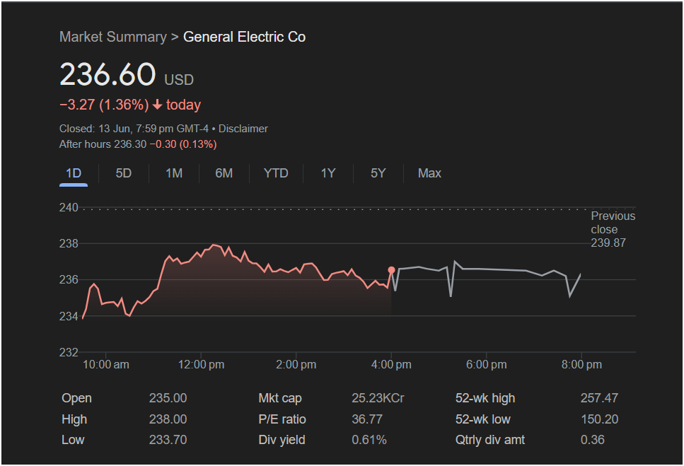 BOSTON, MA – Shares of General Electric Co (NYSE: GE) closed down significantly on Thursday after a promising morning rally was completely erased by afternoon selling pressure, with the stock continuing its slide in after-hours trading.