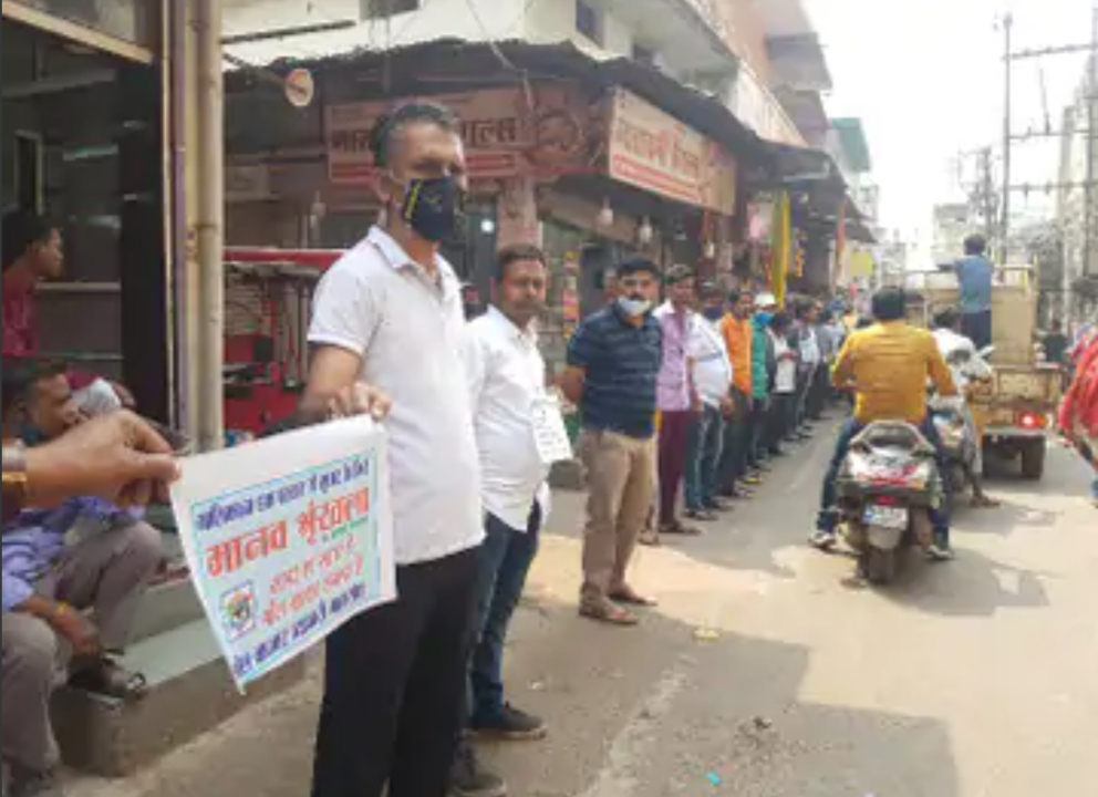 शनिवार को रायपुर के गोल बाजार को लोगों के लिए बंद कर दिया गया और सभी व्यापारी अपनी दुकानों के सामने खड़े होकर विरोध प्रदर्शन करते नजर आए। दुकानदारों ने मानव श्रृंखला बनाई, यह मानव श्रृंखला चिकनी मंदिर चौक से भानजी भाई, भगत किराना, मुन्नालाल पापालाल और वहां से चिकनी मंदिर चौक तक बनाई गई।