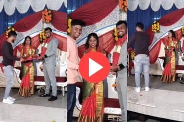 वायरल हो रहा चंद सेकंड का वीडियो देखकर मालूम होता है कि विवाह से जुड़ी सभी रस्में पूरी हो चुकी हैं. दूल्हा-दुल्हन स्टेज पर बैठे हैं जिन्हें दोस्त, रिश्तेदार और परिवार के सदस्य जिंदगी की नई शुरुआत के लिए शुभकामनाएं और गिफ्ट देने पहुंचते हैं. इनमें दूल्हा-दुल्हा के दोस्त भी स्टेज पर पहुंचते हैं और विवाह की शुभकामनाएं देते हैं. अब जब गिफ्ट देने का नंबर आता है तो सभी कंजूस हरकत करते नजर आते हैं. दरअसल सभी दोस्तों नव विवाहित जोड़े के लिए सिर्फ एक ही गिफ्ट लेकर पहुंचे. बात इतने में ही खत्म नहीं होती, कंजूस दोस्त एक-एक कर उसी गिफ्ट से फोटो खिंचवाते हैं और आखिर में इसे दूल्हे को देते हैं. वीडियो में ये दृश्य देखना मजेदार भी खूब लगता है.