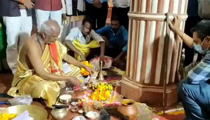 बस्तर दशहरा महोत्सव के तहत 14 महत्वपूर्ण पूजा विधान संपन्न होते हैं. इसी क्रम में रविवार पूर्वान्ह 11 बजे सिरहा सार भवन में डेयरी गणेश पूजा विधान संपन्न हुआ. इस मौके पर विरल पाल जंगल से लाए गए साल की दो बल्लियों को स्थापित किया गया.