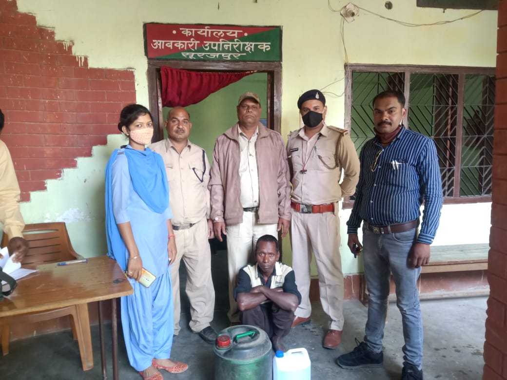 सूरजपुर: कलेक्टर श्री रणबीर शर्मा के निर्देशन में आबकारी अपराधों पर नियंत्रण के लिए जारी अभियान के तहत 23 फरवरी को आबकारी विभाग द्वारा मुखबीर की सूचना पर ग्राम बैजनाथपुर थाना भटगांव निवासी चमरू देवांगन के मकान में दबिश देकर कुल 25 बल्क लीटर अवैध कच्ची शराब बरामद की गई।
